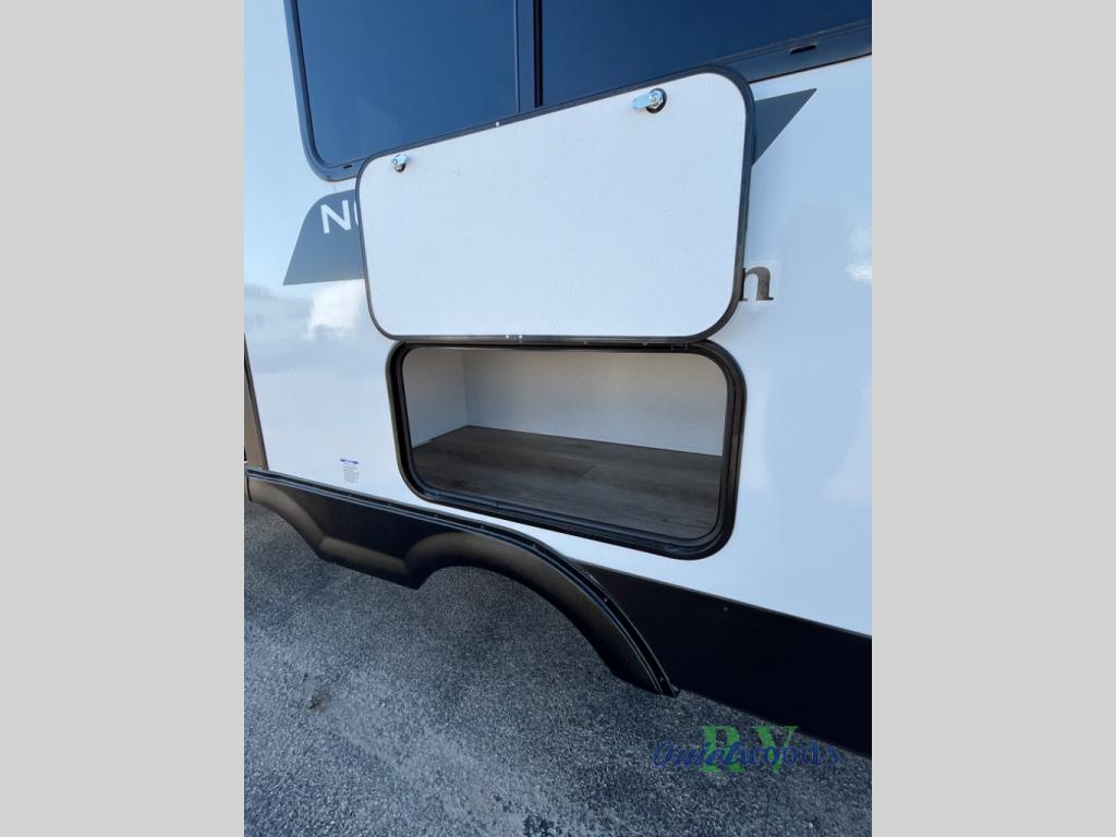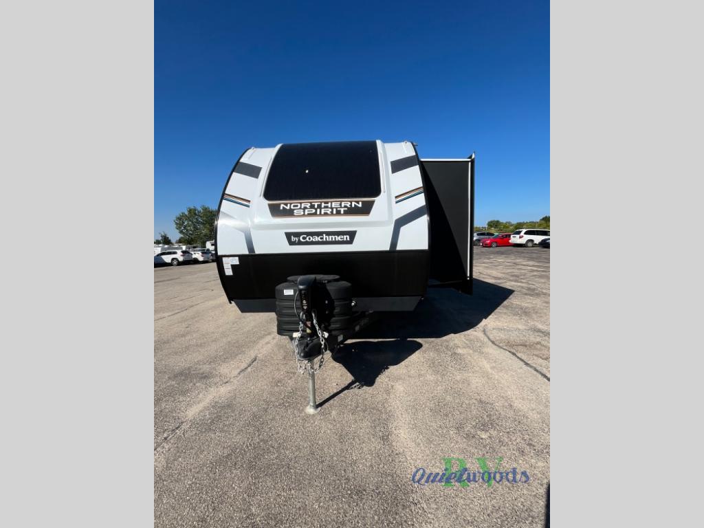 With any Northern Spirit Ultra Lite travel trailer by Coachmen, the "Twice Cool" dual ducted air conditioning system, motion activated floor lights in the bedroom and bathroom, and the motion activated pass-through storage light plus fishing pole storage, will make your camping experience simplified. The heated and enclosed underbelly provides protection on the road and allows you to camp during any season, the 200W solar panel with 30 amp controller provides off-grid camping, and the power tongue jack makes setup easier. Each is built with a front cap with LED strip lights, a laminated, aluminum framed floor, rear wall, and sidewalls, plus 5" trusses with an interior vault. Make your decision today, and camp with everything in its place!