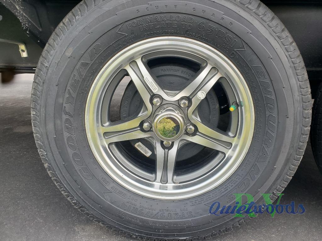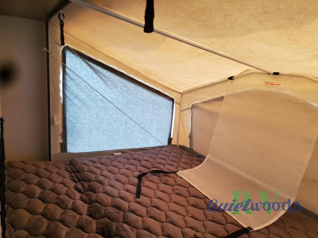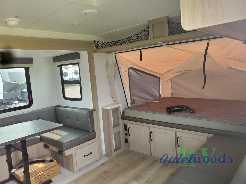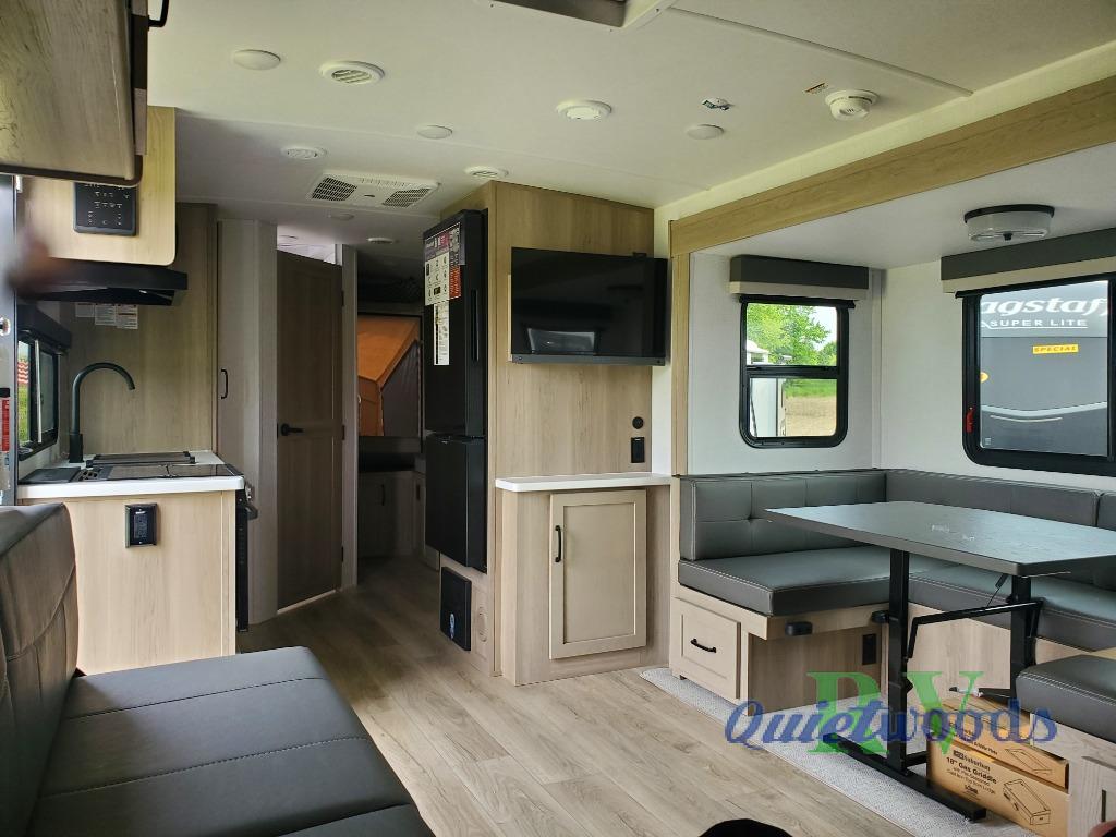 Each Flagstaff Shamrock expandable by Forest River includes an enclosed underbelly, interior and exterior composite sidewall construction, and a vinyl/rubber composite roofing membrane for added durability. The power tongue jack will make hitching up easier than ever, and the torsion axle, Rubber-Ryde suspension and Goodyear Endurance tires will provide smooth towing. You will also appreciate having a 200W roof solar panel with a 1800W inverter, an outside spray port, Keyed-Alike locks, plus many more exterior conveniences. The interior is made to feel more like home with solid wood cabinet doors and drawers, marine grade carpet in the slides, Sedona Wood cabinetry, plus seamless kitchen countertops.