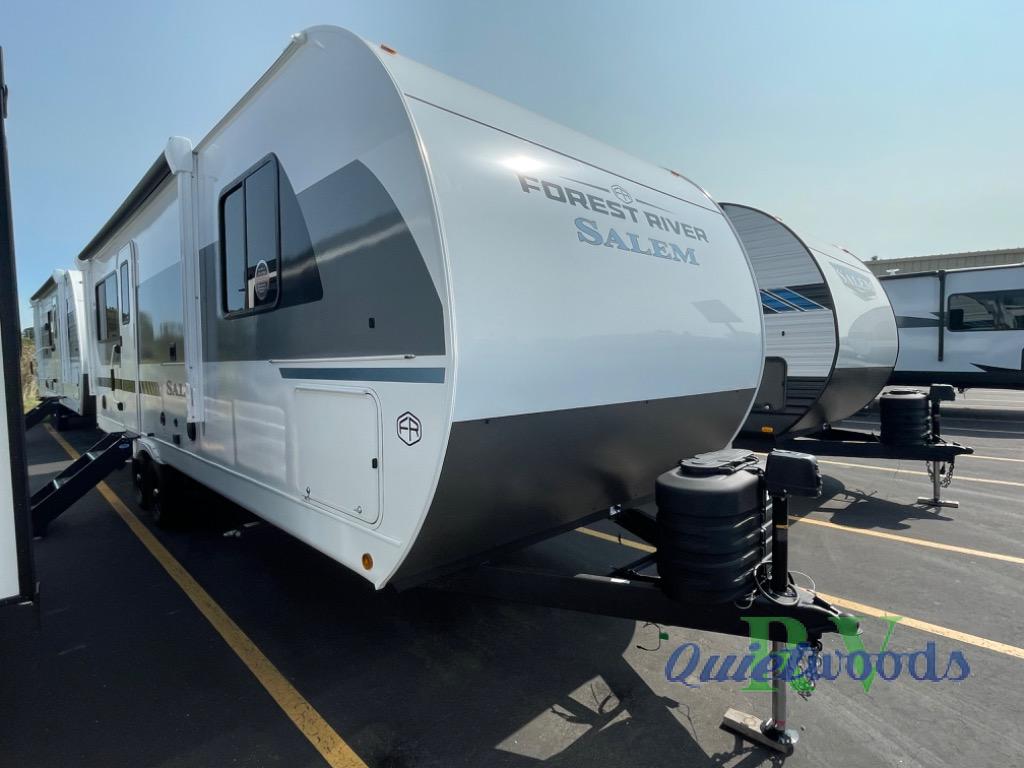 Enjoy years and years of memories with any one of these Forest River Salem travel trailers! They are built with a Dicor PVC roof membrane, a powder coated I-beam frame, and an aerodynamic front radius profile for an easier tow. The triple seal slide out system prevents water from seeping inside and keeps it outside where it belongs. The Best In Class Value Package includes upgraded designer furniture, seamless countertops with no T-mold, and two zone residential soundbars with FM, Bluetooth, HDMI and USB. You will also appreciate the heated and enclosed Accessi-Belly with removable underbelly panels, the power tongue jack with an LED light, and the designated CPAP storage. Some new upgraded features include: a Versa-Tilt bed, a 60K tankless water heater, upgraded showerhead, and so much more!