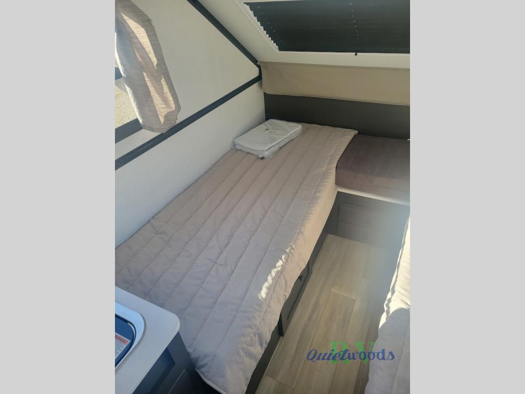 A FRAME Hard Side Pop-Up CamperHard side camper with twin bed design that easily converts to a king bed. Lots of storage and front dormer for extra head room when using the spacious dinette. This camper is super easy to tow weighing only 2,728 pounds.