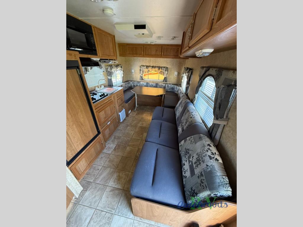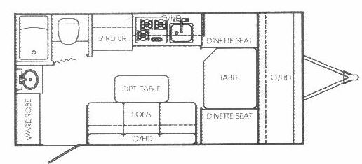 Rear Corner Bath /Toilet, Tub/Shower, Refrigerator, Booth Dinette, Overhead Cabinets, 3 Burner Range, Kitchen Sink, Sofa w/Opt. Table, Wardrobe & More.
