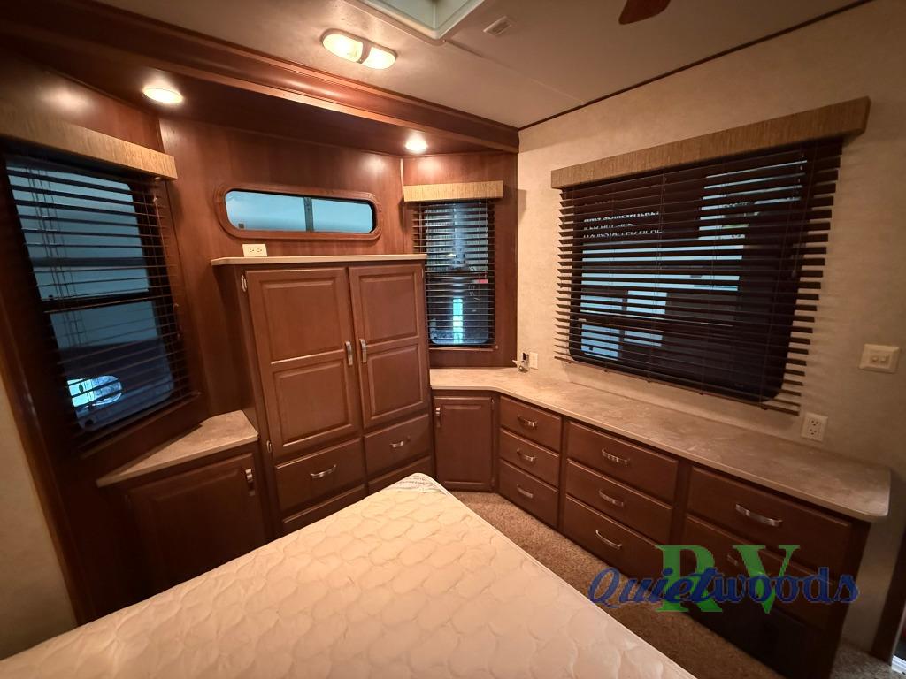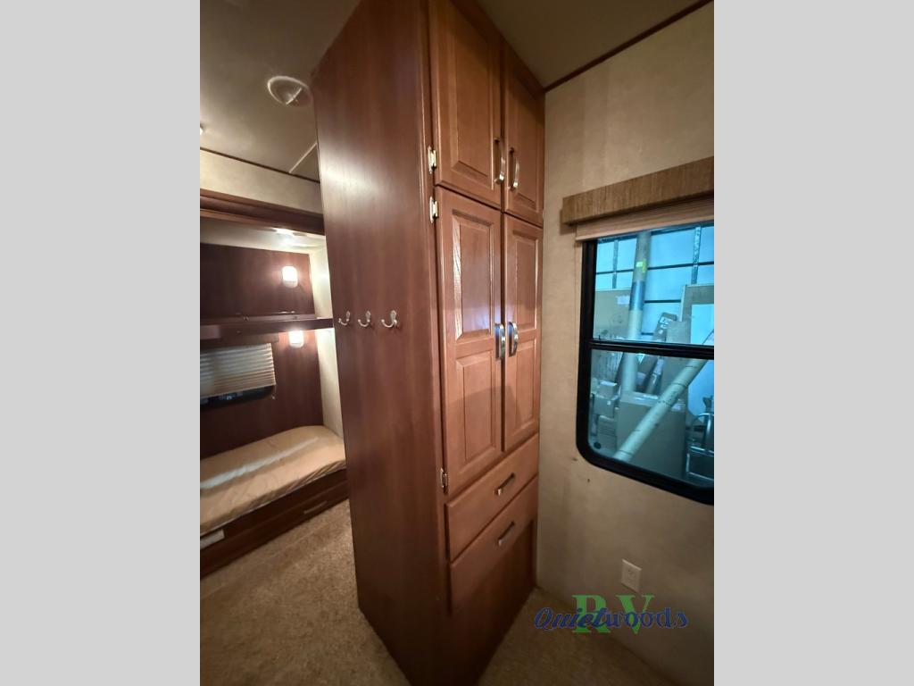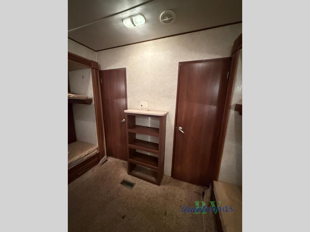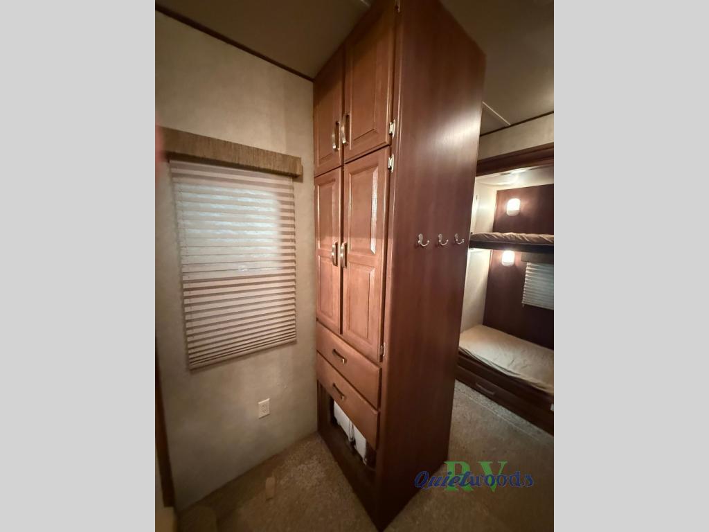 Quad Slide Hampton Destination Trailer, Rear Bunkhouse w/2-Hinged Bunk/Bunk/Trundle Bed Slides, Wardrobe, Toy Box, Ward., TV, Half Bath, Refrigerator, Range, Microwave, Double Kitchen Sink, Bar Stools, Free-Standing Table & Chairs/Sofa Slide, Entertainment Center, Toilet, Shower, Lav., Med. Cab., Linen, Queen Bed Slide, Wardrobe, Vanity, Overhead Cabinets Throughout & Much More.
