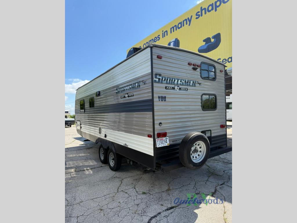 Take family camping to a whole new level with the spacious and affordable KZ Sportsmen SE travel trailer! With its outdoor electric awning with LED lights and its exterior speakers, you will have an exceptional place to party with your family and friends after dark, and the magnetic baggage door catches on the exterior pass-through storage compartments make it too easy to grab additional lawn chairs for extra party guests. The interior of the Sportsmen SE will appeal to everyone's tastes with its beautifully styled residential-grade linoleum flooring, seamless countertops, and stainless steel kitchen sink. On top of all of that, the Sportsmen SE comes with a 13,500 BTU air conditioner to help you keep your cool as you vacation with the family in sunny Florida.