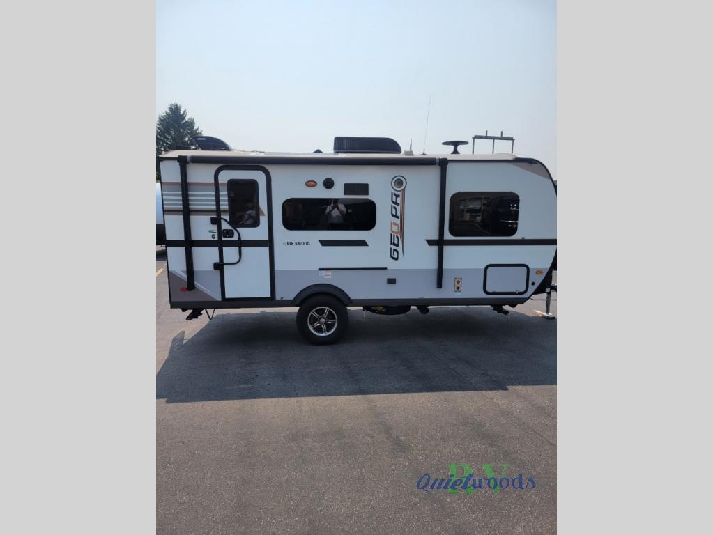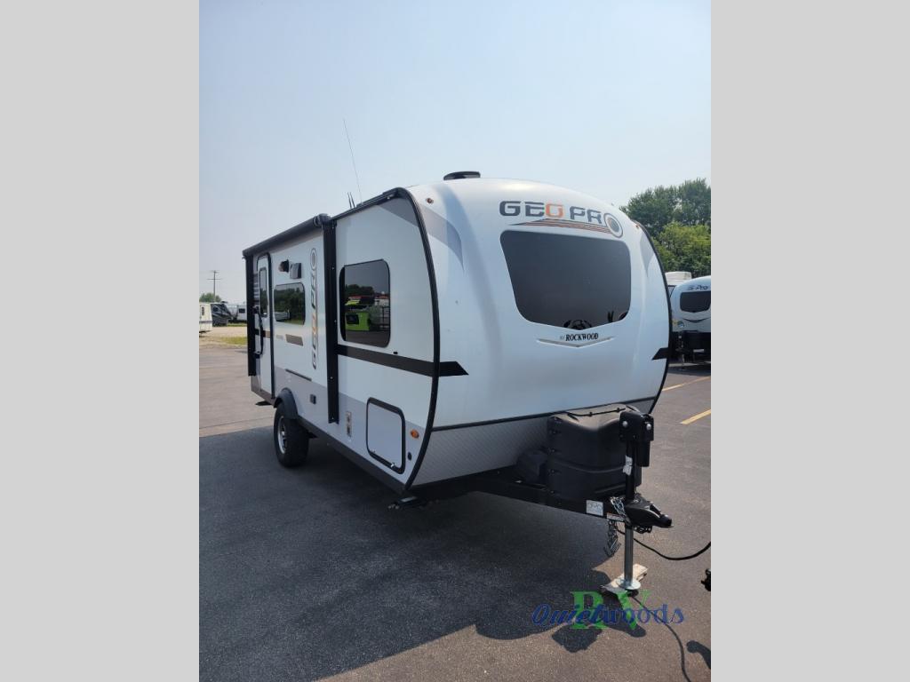 The Forest River Rockwood Geo Pro travel trailer is built to be towed by most "crossover" vehicles and smaller SUVs. Each model is built with six-sided aluminum cage construction, a torsion axle, Rubber-Ryde suspension, and includes a WiFi Ranger WiFi Booster, a power tongue jack, a Water-Pur filtration system, plus more depending on the model you choose. You will also appreciate the outdoor speaker for listening to the AM/FM stereo with Bluetooth and USB as you enjoy the outdoors. Choose your Geo Pro today!