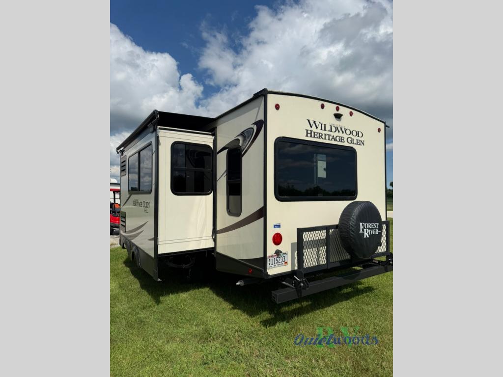 With each Wildwood Heritage Glen Hyper-Lyte travel trailer by Forest River you will appreciate the wide stance axle system for stability, the power tongue jack with LED docking light to easily set up during the day or night, and Solid-Step entry steps plus the XL Lend-a-Hand entry grab handle to the main entrance. The XL Max-Tint panoramic window(s) in the main slide bring the outside inside, plus the yacht trim ceiling finishes, the Herringbone Designer's Choice Shaw flooring and the Hudson Wood agreeable grain cabinetry offer a stylish and beautiful interior to enjoy for years. Take a Hyper-Lyte home today!