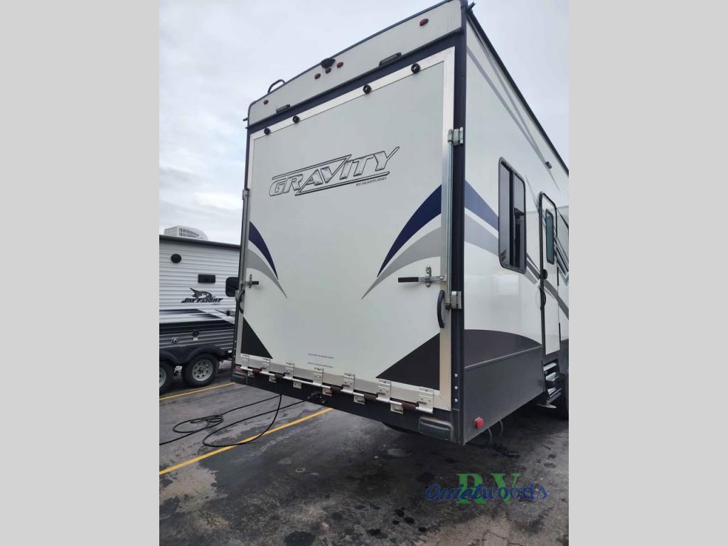With each Gravity toy hauler fifth wheel by Heartland you will enjoy a separate garage for your ATV, motorcycles, or golf cart. You will appreciate the side man door with triple entry steps, a 30 gallon fuel station with a generator prep, plus a power queen bed with opposing sofas and a dinette for sleeping space and an extra eating area. The wide body construction, high gloss exterior, power front landing gear, Dexter 7,000 lb. axles, and power rear stabilizers are just a few of the Gravity "Apollo" package features you will appreciate. And the Gravity "Mission" package gives you features such as a stainless steel kitchen sink with a residential style faucet, an 8 cu. ft. stainless steel refrigerator, a queen bed in the master bedroom, and reclining sofa seating with fold down counsel featuring cup holders and USB charger. So load up your off-road toys, camping gear and such and start feeling the gravity!