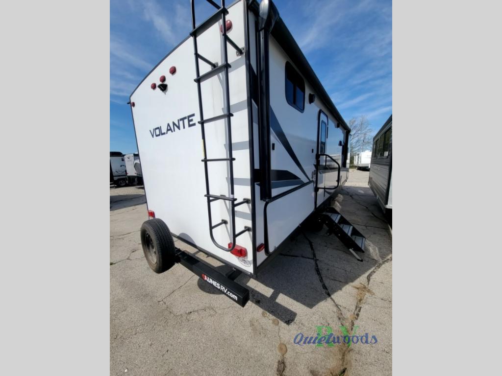 Each Volante fifth wheel or travel trailer by CrossRoads RV includes features and options that will enhance your camping experience. The fiberglass front cap is sure to be eye-catching, and you can plan to camp year around with the fully enclosed and forced air heated underbelly. There is also an outside shower, an electric awning with LED lights, outdoor speakers with LED accents, plus many more exterior conveniences. The interior of each Volante will have you feeling right at home with premium residential furniture, coordinating window treatments in the bedroom, nightstands with outlets in the bedroom, plus USB ports to keep your electronics charged. You will also appreciate a 13,500 BTU A/C, plus solar power prep and WiFi prep if you need to get some work done while you're away from home.