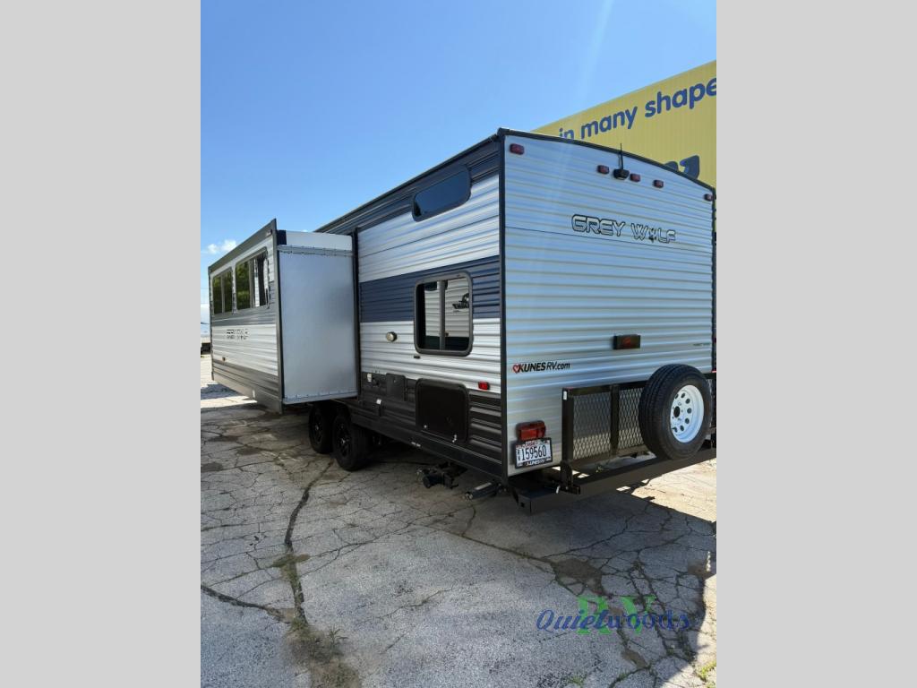 Whether it's a journey that will take you to new locations or a tried-and-true getaway to that favorite and memorable destination, the Forest River Cherokee Grey Wolf travel trailers and toy haulers are going to make the trip worth it every single time! You can travel in confidence with the premium wheel package, seamless roofing membrane with heat reflectivity, Power Gear frame technology with space-saver rail design, and Cherokee back-up camera system. The Cherokee Grey Wolf's interior is highly attractive with its stainless steel kitchen suite package, premium bedding ensemble and comforter, and 8" ceiling-mounted subwoofer with accent lighting. You will also find a black waste tank flush-out kit, an outside shower with hot and cold water, an armored underbelly tank enclosure, a power tongue jack, and an RV grill quick connect.