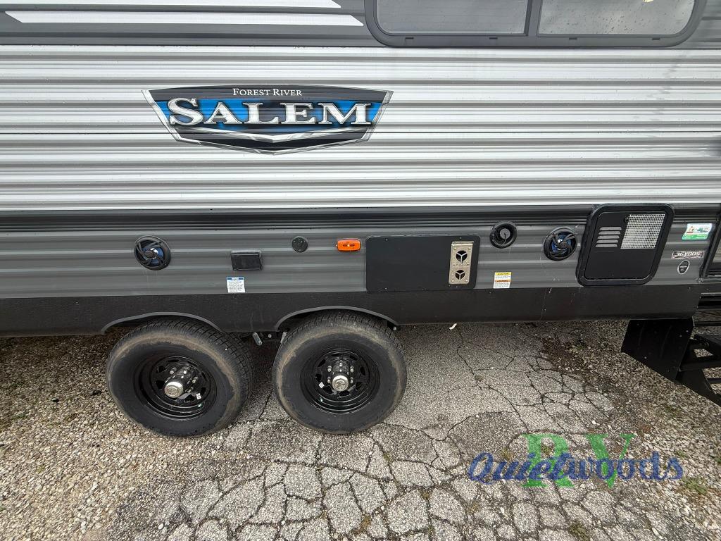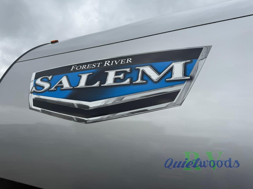 Enjoy years and years of memories with any one of these Forest River Midwest Salem travel trailers! They are built with a one piece, SuperFlex roof, a powder coated I-beam frame, and an aerodynamic front radius profile for an easier tow. The triple seal slide out system prevents water from seeping inside and keeps it outside where it belongs. The Salem Best In Class Value Package includes upgraded designer furniture, seamless countertops with no T-mold, and two zone residential soundbars with FM, Bluetooth, HDMI and USB. You will also appreciate the heated and enclosed Accessi-Belly with removable underbelly panels, the power tongue jack with an LED light, the designated CPAP storage, plus many more convenient features. Come see all of the other new features today!