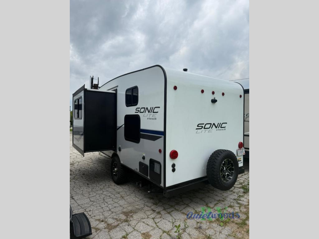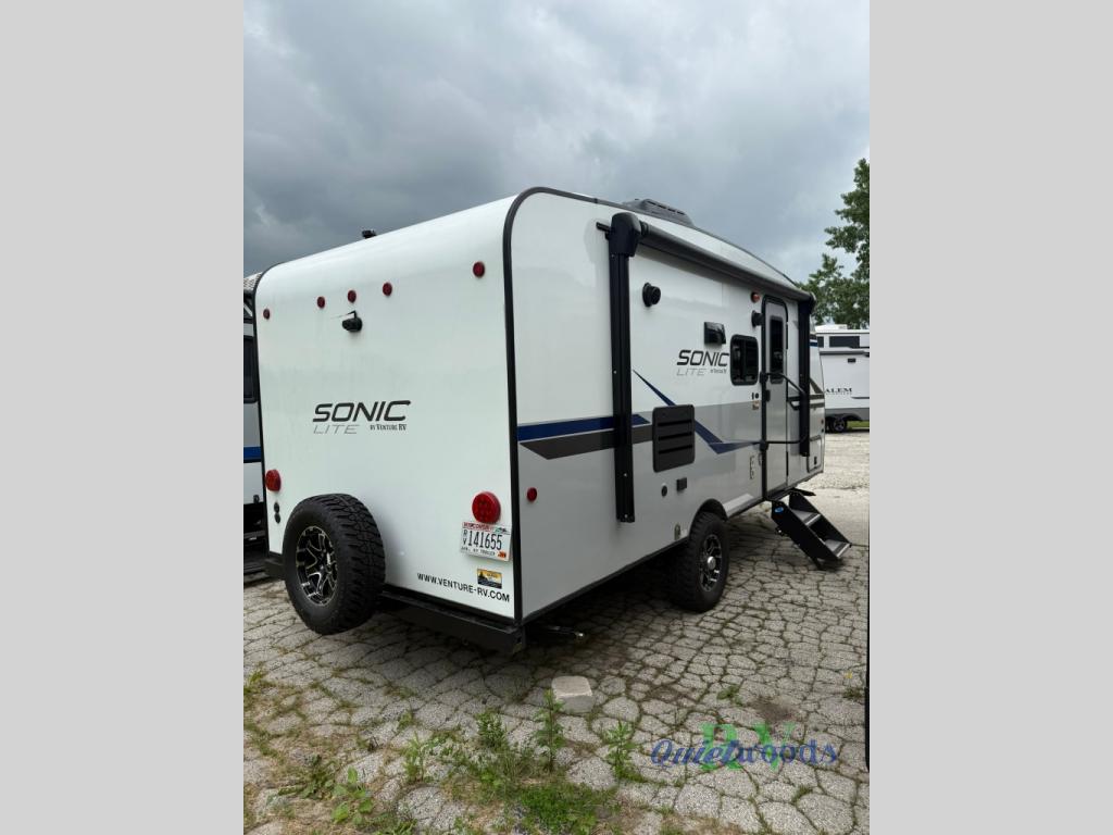 With any Sonic Lite travel trailer by Venture RV, you begin with Next Generation in RV frame technology with the NXG frame, AZDEL Onboard composite panels, tongue and groove plywood floor decking, and a tucked rear bumper. The Blast Package 1.3 provides a motion light in the bathroom, a deep round stainless steel sink with cover in the kitchen, and the Venture LevelMate Pro which allows you to use smartphone technology to level the RV, plus a lighted power tongue jack, and WIFI prep to mention a few features. Get ready for comfort and style in a Sonic Lite ultra-lightweight, single-axle travel trailer of your choice!
